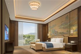 客厅:智能电动窗帘比普通窗帘更方便,它具有方便、简约、智能等特点,无需手动开关,让人“变懒”使酒店更方便。通过电机来拉合窗帘,省时省力同时避免了人力拉窗帘对窗户轨道造成的磨损。