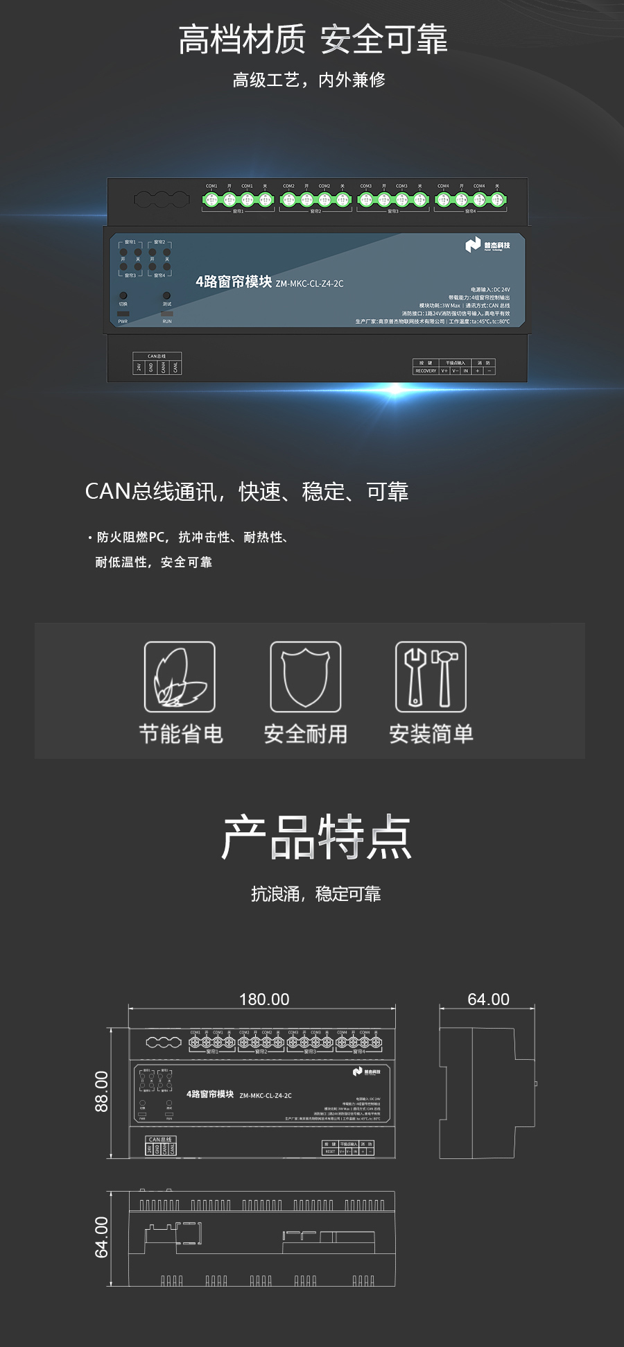 * 表示必填采购:CAN总线分体式模块四路窗帘模块