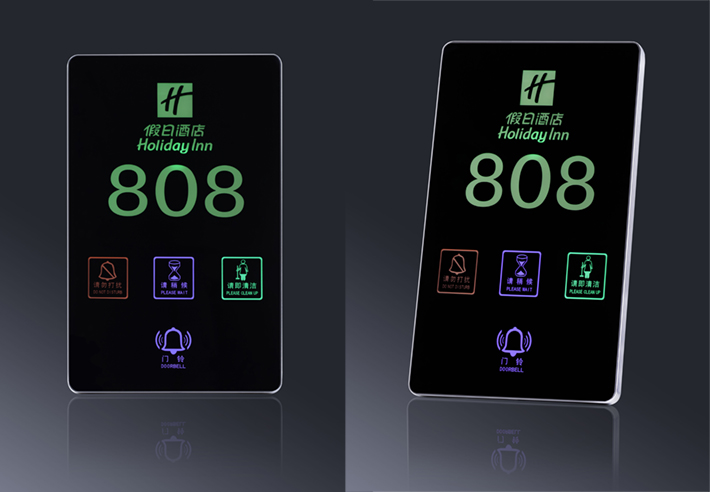 大房号、勿扰、稍后、清理、门铃、刷卡开门、个性酒店LOGO七大功能于一体。