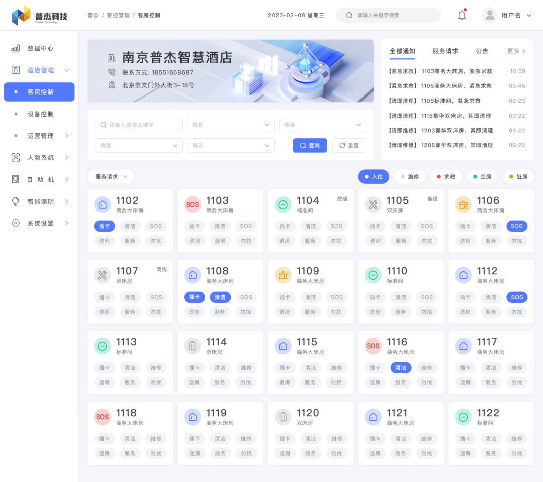 两者的协同可实时反馈客房用电状态与客人在店信息:PMS 中的退房指令触发后,智能管理系统会同步切断房间供电权限,防止能源浪费;